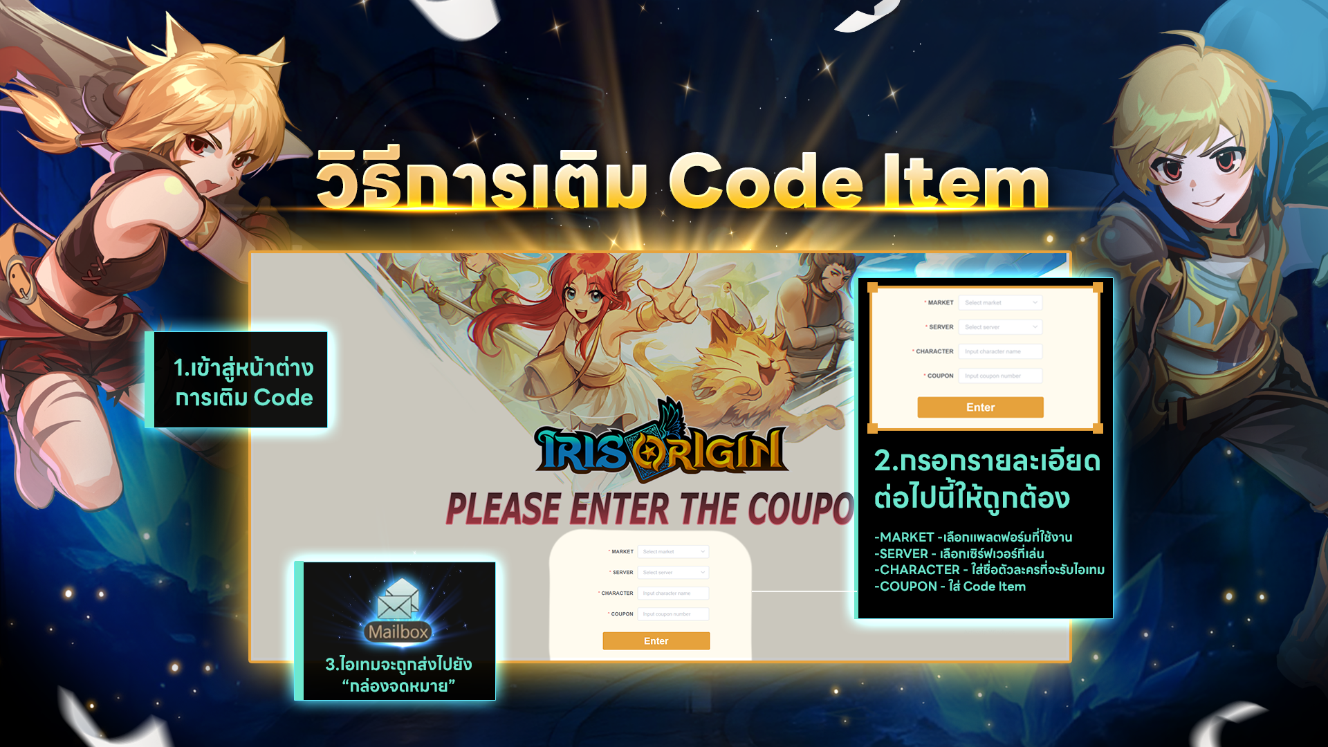 เติม Code Item >> https://redeem.irisorigin.com:17000/#/couponuse